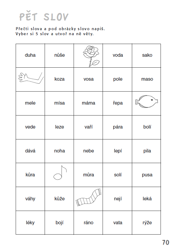 SPU_Cteni_ukazka9.png - čtěte slova, samostatná práce - vymyslete a do sešitu napište pět vět s vybranými slovy ( kdo nevytiskne, nebo mu to nejde otevřít, napiš věty s těmito slovy, co jsem vybrala já - řepa, pusa, nůše, šála, rýže).