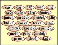 ( můžete si slova vystřihnout a skládat do sloupců podle počtu slabik nebo kde je č - na začátku, uprostřed, na konci,nebo co jsou věci, zvířata, činnosti a pod.)