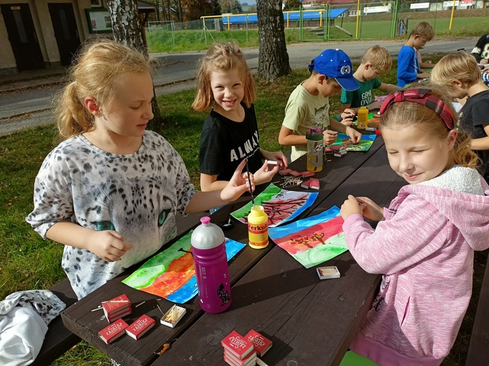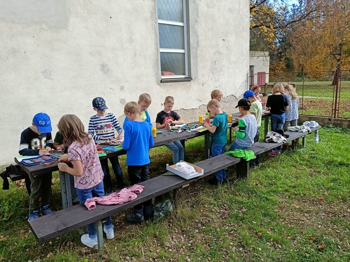 Využíváme posledních krásných podzimních dní k tvoření venku.