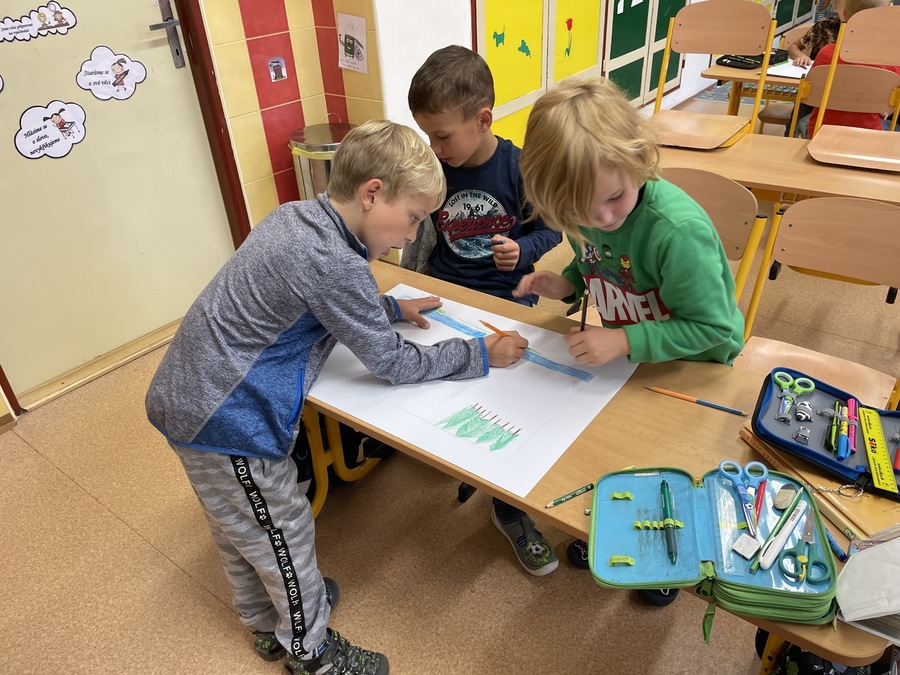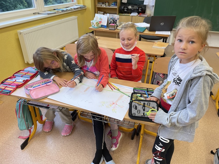 Pátek 24.9. byl věnován přírodě. Nejdříve žáci ve skupinách namalovali obrazy přírody (co si představí pod pojmem ,,příroda") a poté jsme se vydali na procházku městem a okolím, kde jsme pozorovali a poznávali rostliny, zvířata, houby a první podzimní změny. Z přírodnin žáci sestavili obrázky a nesměla chybět ani fotka s čerstvě opadaným listím.