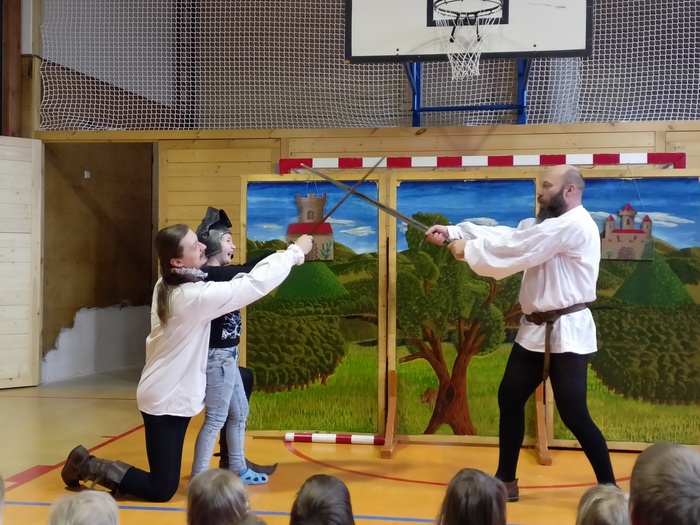 V pondělí 9.1.2023 k nám do školy zavítala agentura Pernštejni, kteří nám zahráli pohádku o dobách rytířů, princů a princezen. Pohádka byla akční, někteří z nás si i vyzkoušeli, jaké to je být hercem.