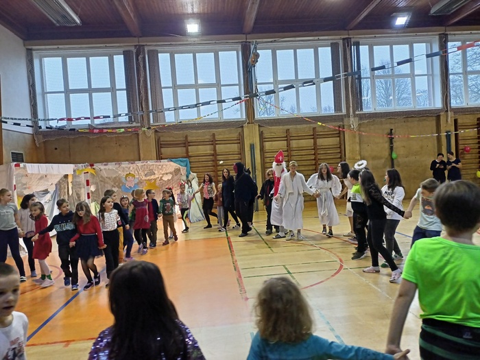 V pondělí 5.12. 2022 jsme se zúčastnili Mikulášské besídky pořádané našimi deváťáky. Trochu jsme se báli čertů, ale i přes to jsme dokázali předvést naše vánoční představení. Taneček se nám povedl a my jsme za vystoupení dostali malý dáreček od Mikuláše.