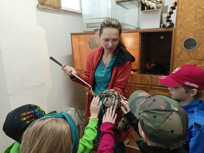 V úterý 2.5.2023 naše třída navštívila chovatelský kroužek v Černovicích. Paní Věra Dvořáková, která má zvířata na starosti, nás seznámila se všemi druhy, řekla nám mnoho zajímavostí a ještě nám ukázala, jak se krmí hadi. Návštěva byla velmi zajímavá a poučná.