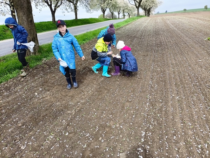 Čtvrťáci se v pondělí 15.4.2024 i přes nepřízeň počasí vydali v rámci výuky přírodovědy do terénu, aby si ověřili své získané znalosti o neživé přírodě. Za pomoci pana Dvořáka, který se zabývá minerály, si dokázali nasbírat několik nerostů a objevit v blízkosti naší školy pozůstatky grafitových dolů. Vlastnosti grafitu pak následně využili ve výtvarné výchově.