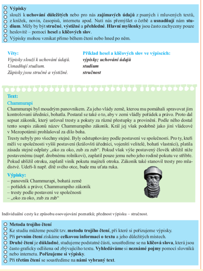 Ve slohu se tentokrát zaměříme na VÝPISKY. To, co je na této stránce Výpisky 6. 1..png podbarveno modře, přepište (nalepte) do sešitu na sloh. Podívejte se i na příklad, který je na této stránce uveden.