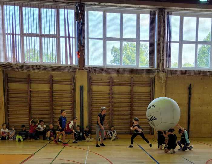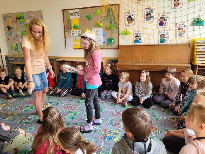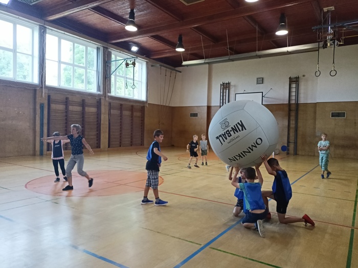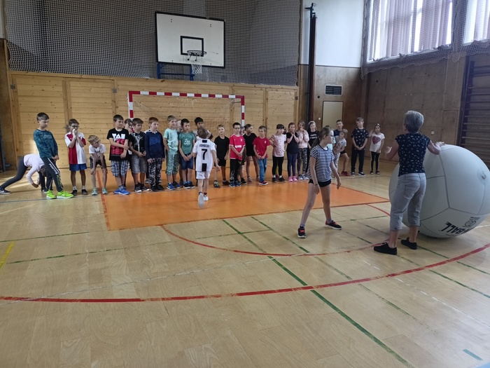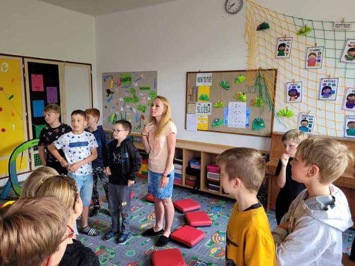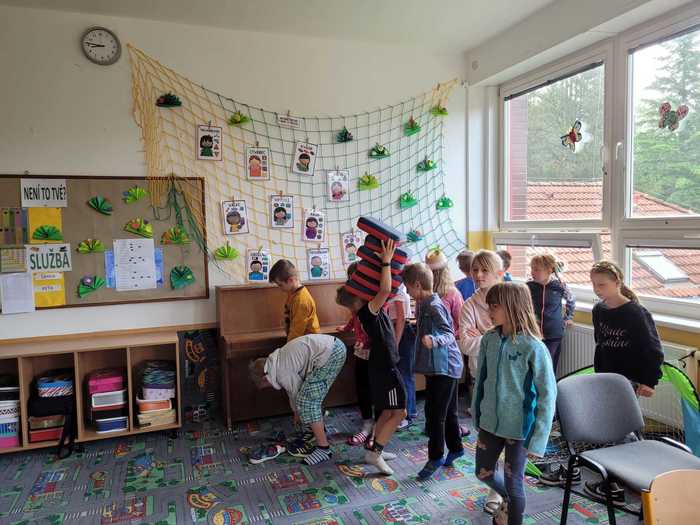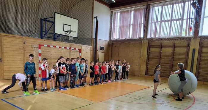 Děti strávily dopoledne vzájemným poznáváním dle popisu z dopisů a zkusily si "poměřit své schopnosti" při soutěži v malé násobilce. Třeťáci z Choustníka také chtěli poznat naše sportovní aktivity jako je Kin-ball a Jumping.