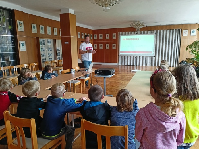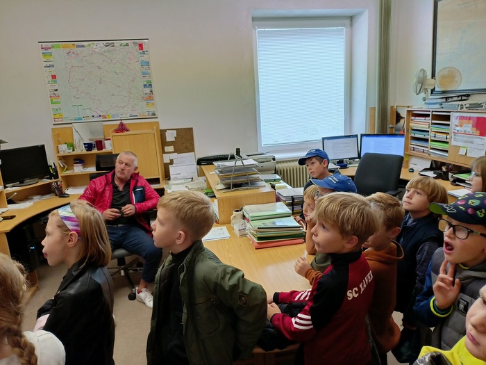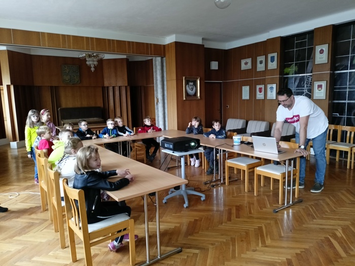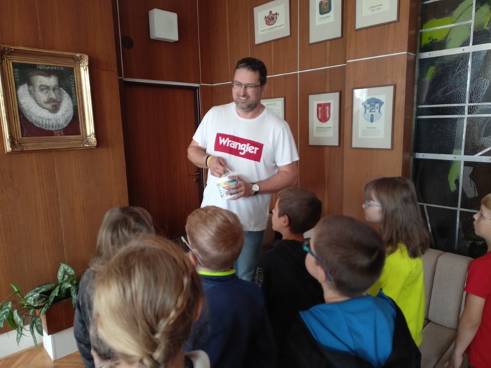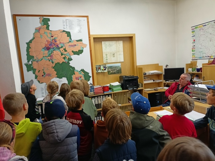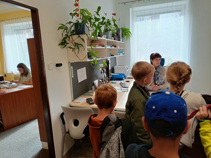 Dnes žáci 3. třídy v rámci předmětu "Svět kolem nás" navštívili Městský úřad v Černovicích. Pan starosta děti přivítal ve své kanceláři a pozval je do zasedací místnosti, kde měl připravenou zajímavou "přednášku" o funkci městského úřadu, starosty, zastupitelstva a dalších zaměstnanců města. Poté si žáci prohlédli další části úřadu a popovídali si s paní tajemnicí, s paní matrikářkou a s vedoucím stavebního úřadu. Prohlédli si i velmi staré matriční knihy a nahlédli jsme do archivu stavebního úřadu.