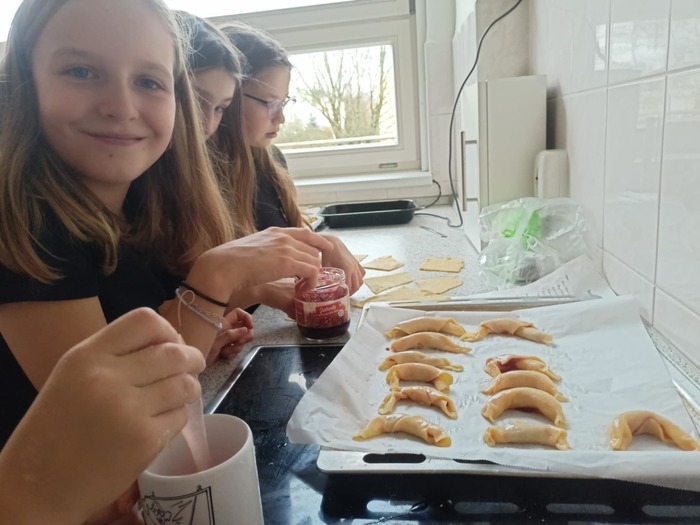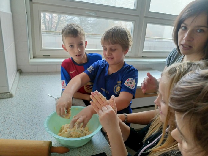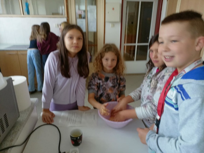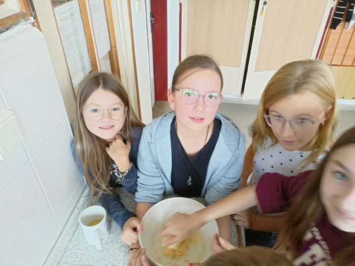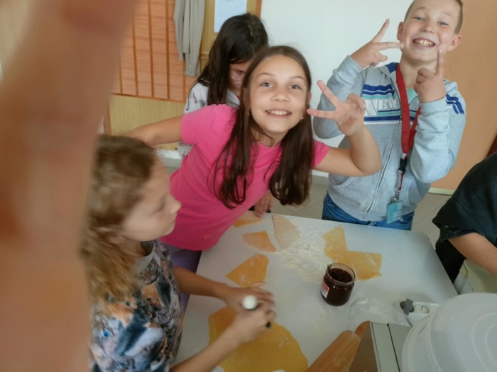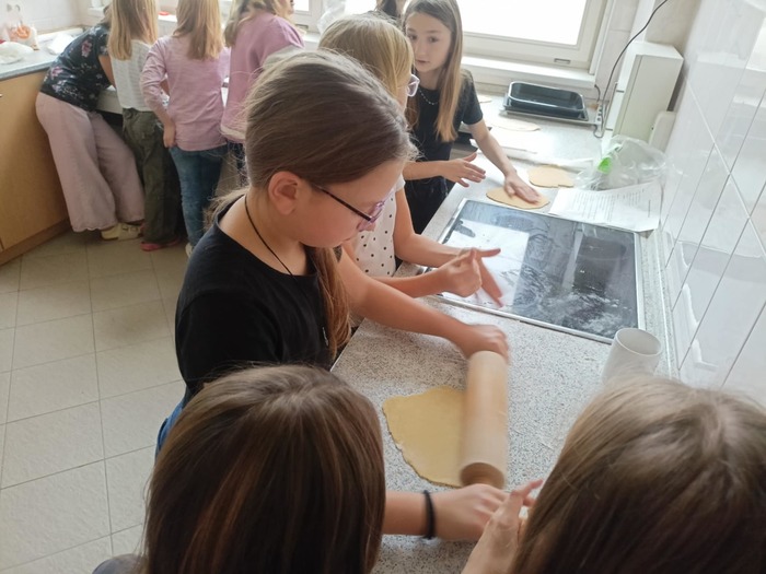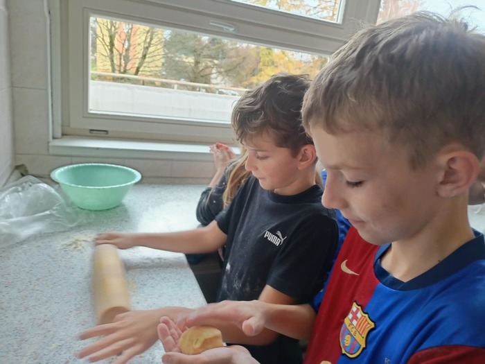 I čtvrťáci se dnes věnovali svátku svatého Martina a upekli o hodinách výtvarné výchovy v naší cvičné kuchyňce téměř 100 výborných svatomartinských rohlíčků.