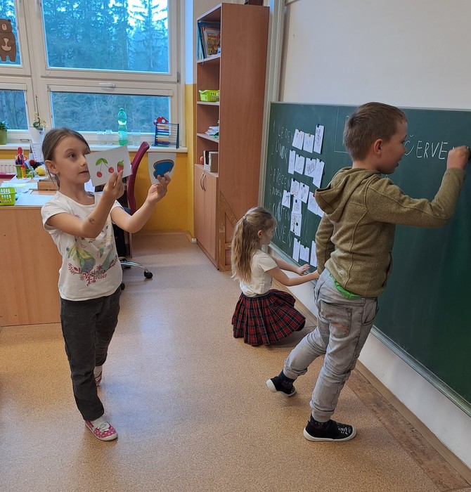 Naši předškoláci se zúčastnili 1. března a 17. dubna výuky v 1. třídě na základní škole. Strávili zde jednu vyučovací hodinu. Každý předškolák seděl v lavici s jedním školákem a pracovali společně na zadané práci. Poprvé se výuky zúčastnili s paní učitelkou ze školky a podruhé už návštěvu zvládli sami. Zápis do ZŠ probíhal 21. 4. a tuto významnou událost jsme se jim snažili udělat méně stresující. A sice tím, že se předem seznámili s paní učitelkou, která u zápisu byla s nimi. Poznali tak i třídu, ve které zápis probíhal. „Střídavka“, jak jsme tyto pravidelné návštěvy na základní škole nazvali, bude probíhat i v květnu a červnu. Chceme budoucím prvňáčkům usnadnit nástup do školy. Předškoláci jsou nadšení a moc se do školy těší.