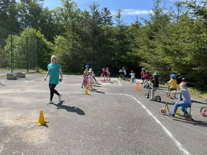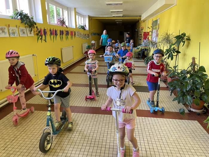 Dne 1.6. si děti z mateřské školy užily dopravní den. Každý si přinesl svou cyklistickou helmu a své odrážedlo nebo koloběžku. Na hřišti je čekala překážková dráha. Poté se děti vydaly do lesa a plnily dopravní úkoly. Na konci je ve školce čekala odměna.